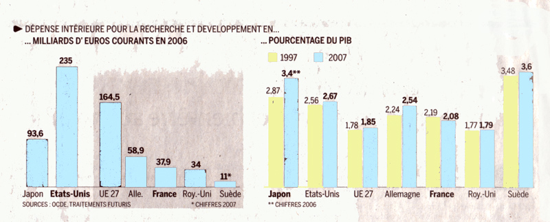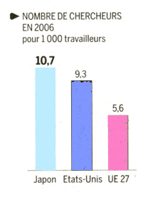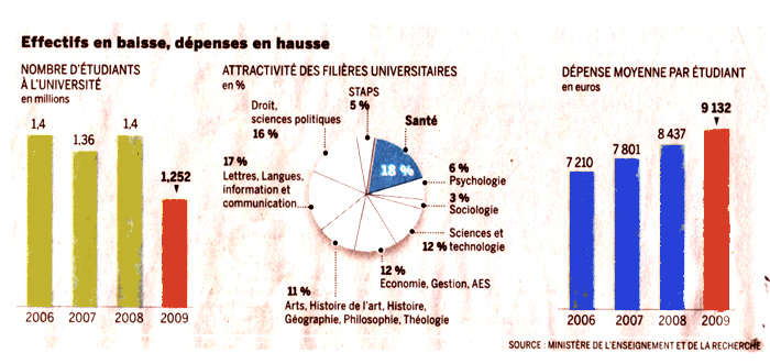 Un autre document fait apparaître des nombres un peu différents pour 2009 1,4 millions d'étudiants et 55 000 enseignents-chercheurs