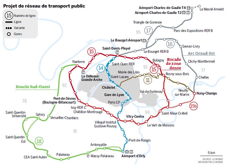 Le projet du Grand Paris Transports en 2013 publié par "le monde" du 7 mars 2013