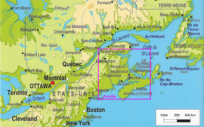 côte atlantique de l'Amérique du Nord et donne le nom d'Acadie