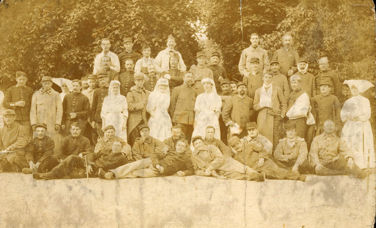 puis plus tard mon grand père lui fit parvenir cette photo. Elle put y reconnaître son mari (dernier personnage en haut à droite)