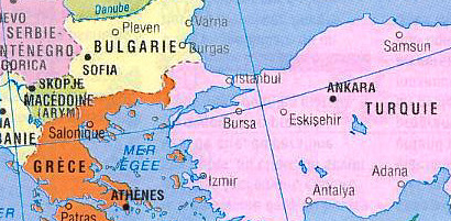 (nord est de la Grèce, Turquie, sud de la Bulgarie).