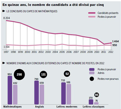 salaires bas. De moins en moins de candidats se présentent aux concours , Capes,