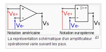 Les amplificateurs opérationnels ou ampli différentiel intégrés sont généralement représenté par le symbole ci dessous: