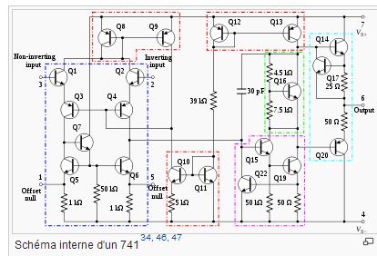 La première famille d'Amplificateurs opérationnels fut réalisée à l'aide de transistors bipolaires (voir en fin de fiche le tableau comparatif)