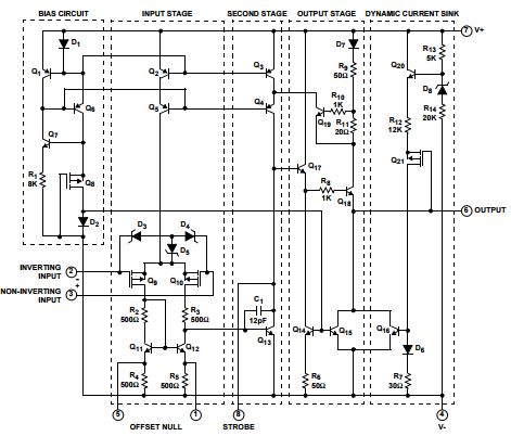 David Fullagar conçut un amplificateur avec une compensation interne qui permit à tout utilisateur d'employer un Ampli Op dans des schémas ultra simples même sans être un analogicien accompli de plus il peut supporter un courant de court-circuit indéfiniment. Le μa741 est encore produit actuellement, certainement en quantité réduite et pour un prix très modique, durant les années 90 son prix n'était pas beaucoup plus qu'un franc.