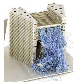 Un des 24 racks de 28 pouces de haut (710mm) les sorties différentielles des portes sont reliées à l'aide de paires torsadées tous les câbles ont la même longueur. Ces racks sont contenus dans les colonnes qui montent au dessus des cellules de refroidissement. | ||||