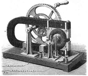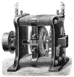 Zénobe Gramme était menuisier, il n'était pas un homme de science mais un bricoleur de talent. En 1856 il s'installe à Paris où il travaille pour des sociétés qui conçoivent du matériel électrique et notamment chez Ruhmkorff, le célèbre constructeur d'instruments scientifiques. En 1869 Gramme réinvente la machine de Pacinotti , machine qui était restée au stade de laboratoire mais qui néanmoins avait permis de démontrer la réversibilité des machines à courant continu. La dynamo est présentée le 17 juillet 1871 à l'Académie des Sciences. À la fin de 1871, il prend accord avec le comte d' Ivernois, administrateur des Docks de Saint-Ouen, pour créer une société, la Société des Machines magnéto-électriques Gramme, et le comte d' Ivernois y fait entrer Hippolyte Fontaine en tant que directeur. Fontaine restera administrateur de cette société jusqu'en 1900 et deviendra un personnage important dans le domaine de l'électricité. L'association de Gramme et son esprit inventif et de Fontaine l'industriel sera très féconde. A partir de ce moment l'usage de la dynamo électrique se répand. C'est en 1873 que la dynamo entre dans l'ère industrielle. A l'exposition de Vienne cette année là deux machines identiques de Gramme, l'une fonctionnant en dynamo alimentait la seconde qui entraînait une pompe. Mais ce sera surtout à l'exposition de 1881 où l'on vit des applications comme le labourage électrique de M Félix, le chemin de fer électrique de Siemens mais surtout le Réseau électrique de Marcel Deprez qui à partir d'une dynamo unique alimentait plusieurs moteurs à distance frappa les esprits. La porte était ouverte à la distribution du travail mécanique.