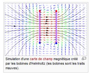 on pourra étudier expérimentalement le champ créé par les deux bobines à l'aide d'une animation sur le site de l'université du Mans à l'adresse suivante: | |||||||||