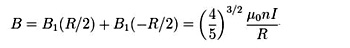 Ces bobines de rayon R et écartées d'une distance R sont souvent utilisées pour supprimer l'effet du champ magnétique terrestre sur une application qui serait située entre ces bobines, là où les lignes de champ sont linéaires . Le champ peut être calculé à l'aide de la loi de Biot et Savart
