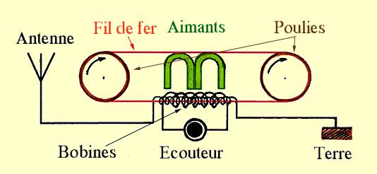 En 1895 Marconi réalise une expérience sur les ondes qui on été découvertes par Rudolf Hertz en 1886, il utilise le cohéreur de Branly découvert en 1890 et l'antenne de GI. Alexandre Popov physicien et ingénieur russe (1859 - 1906) a découvert l'antenne par hasard en se raccordant à un fil de paratonnerre. Cette expérience ne trouve pas d'audience en Italie. Il poursuit ses expériences en Angleterre où il dépose un brevet. Il réalise en 1897 plusieurs expériences qui permettent d'atteindre une portée de 18 km. En 1898 il crée la première usine de radio du monde et en 1899 il réalise la première liaison transmanche au cours de laquelle il rend hommage à Edouard Branly inventeur du cohéreur.En 1900 il utilise des circuits accordés qui lui permettent d'utiliser plusieurs fréquences. En 1901 il établit une liaison entre Corse et continent et une première liaison transatlantique entre Angleterre et Terre Neuve. L'utilisation de plusieurs fréquences vont permettre de réaliser des études de propagation à longue distance. En 1902 Marconi annonce la mise au point du détecteur magnétique d'ondes radio. Une antenne radio est connectée à une bobine électromagnétique qui magnétise un fil de fer qui défile dans cette bobine. La variation de l'état magnétique du fil est détectée et émet un son dans un écouteur. Le fil est rendu à l'état initial par des aimants placés sur son chemin. On pourra trouver des explications plus détaillées sur Wikipedia ou sur le site http://dspt.perso.sfr.fr/detecteurs.htm qui a pour titre "raconte moi la radio"