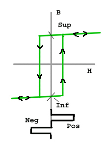 contraire créant un champ négatif, (Neg) , l'induction rémanente se