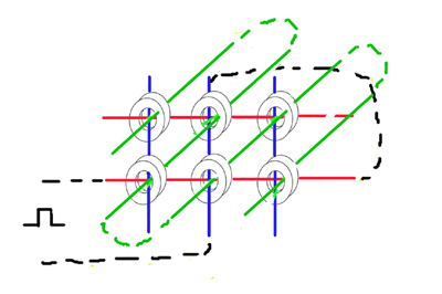 chaque intersection est placé un tore de ferrite. Chaque tore est au