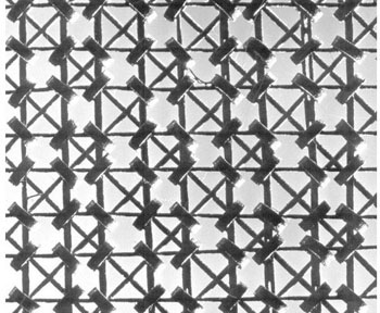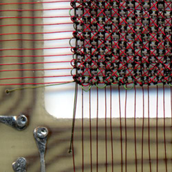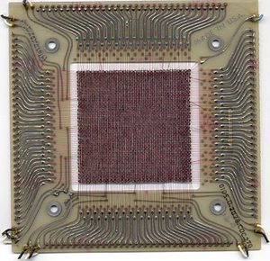 portion d'une mémoire à tores de ferrite . Un tissage de fils