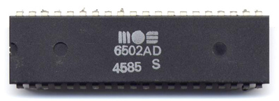 1975 - Le microprocesseur 6502 En 1975 Mos technologie commercialise le 6501 qui est sur le plan du brochage entièrement compatible avec le 6800. Il est proposé à 25$ alors que le 6800 de Motorola et le 8008 d'Intel sont à 179$ . Immédiatement Motorola attaque Mos technologie et cette dernière ne voulant pas courir le risque d'une condamnation retire le 6501 du marché. Quelques mois après Mos Technologie propose le 6502 qui est un 6501 au brochage modifié. La gravure évoluera de 8 μm à 0,8 μm L'horloge interne est identique à l'horloge externe de 1 à 2 MHz Bus de données 8 bits et le bus d'adresse est de 16 bits. En interne 1 Accu de 8bits, 2 index de 8bits ainsi qu'un pointeur de pile et le registre d'état, seul le compteur de programme est de 16bits Le 6502 fut très employé et surtout dans des machines peu coûteuses notamment Apple et Commodore |
