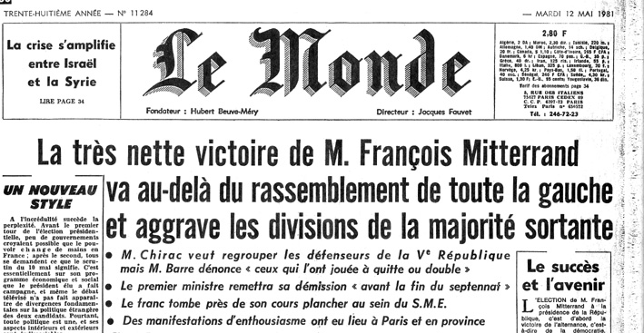 Mitterrand est élu président de la république le 10 mai 1981 |