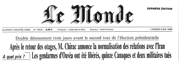 sont libérés, 2 gendarmes sont tués ainsi que 19 Kanaks dont 3 dans des conditions