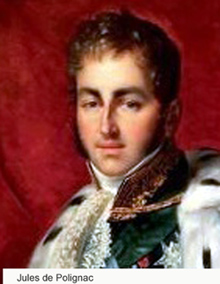 1829 Après la chute du ministère Villèle et du ministère suivant plus modéré ( Martignac ) il confie le ministère des affaires étrangères à l'ultra-royaliste Polignac "le plus aveugle, le moins prévoyant, le plus obstiné des ultras" puis ensuite il lui confit le gouvernement ce qui apparaît comme une provocation (1829). Jules de Polignac est un ami d'enfance de Charles 10 en qui il peut avoir toute confiance mais qui est particulièrement incompétent. Le gouvernement, est formé le 8 août 1829