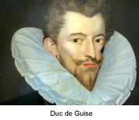 le règne de Charles 9. Catherine chercha toujours, aidée de Michel de l'Hospital, à concilier les uns avec les autres. Elle tenta de concilier les deux églises en organisant le colloque de Poissy (septembre 1561) mais cela ne fit qu'empirer les choses. Pour les "Guise" la France ne pouvait être que catholique. En mars 1562 le hasard fit tomber les Guises et leur escorte sur une grange dans laquelle les protestants étaient réunis pour célébrer leur culte dans le village de Wassy en Champagne. Ils les passèrent au fil de l'épée (plusieurs dizaines de morts et cent blessés). Cet évènement inaugure une période de 36 années de guerre de religion. Au massacre de Wassy les protestants répondent par l'assassinat du duc François de Guise ![]() La majorité de Charles 9 est proclamée le 17 août 1563. Le 13 mars 1564, Catherine de Médicis et le roi Charles 9 accompagnés d'une suite d'un millier de personnes, entreprennent un tour de France qui durera plus de 2 ans pour tenter de renforcer la cohésion du royaume. En 1567 les protestants tentent de s'emparer du roi, la guerre reprend, les catholiques en sortent vainqueurs à Saint Denis et la paix est signée à Longjumeau en 1568. Le renvoi de Michel de l'Hospital rallume la guerre, les protestants sont battus à Jarnac et Moncontour en 1569. Au cours de ces batailles, Condé est tué. Le prince de Condé , Louis 1er de Bourbon était le général en chef des Huguenots. Catherine traite avec les protestants en 1570 elle leur accorde des "places de sûreté": Montauban, La Rochelle, Cognac, La Charité-sur-Loire par l' Édit de Saint Germain. Gaspard de Coligny qui avait vécu son enfance à la cour de François 1er dont l'Espagne et particulièrement Charles Quint était l'ennemi héréditaire est fait Amiral de France en 1552 par Henri 2 suite à une victoire contre les espagnols. En 1557 , enfermé dans Saint-Quentin par l'armée de Charles Quint, qui mourra en 1558, il doit se rendre. Cette défaite entraînera le traité de Cateau-Cambrésis (1559). Il se convertit progressivement au protestantisme mais condamne la violence. Il pousse Catherine de Médicis à adopter une politique de conciliation mais devient l'ennemi d'Henri de Guises (fils de François) dit le balafré . En 1562 la guerre éclate entre catholiques et protestants, engagé aux cotés du prince de Condé, Il négocie une aide financière de Elisabeth d'Angleterre en échange de quoi il lui cède le port du Havre. Cet acte au profit de l'ennemi héréditaire de la France lui sera reproché même par les réformés. Cette "trahison" ainsi que sa participation à la guerre des religions en fait un personnage détesté des catholiques. Il revient à la cour en 1571 où il va tenter de décider Catherine et Charles de relancer la guerre contre les espagnols en venant en aide "aux gueux" des Pays Bas Les Pays Bas, qui sont sous la coupe de l'Espagne, connaissent "la révolte des gueux" les révoltés, dont une grande partie était des protestants, avaient pris ce nom lorsqu' un conseiller de la régente, Marguerite de Parme, pour la rassurer, avait assuré que ce n'était que des gueux. Une partie de ces gueux avait été massacrés en 1566. En 1568 deux comtes, bien que catholiques mais opposés au roi d' Espagne Philippe 2, furent exécutés sur la grand place de Bruxelles déclenchant une véritable guerre. Pour Catherine une guerre contre l'Espagne fait courir à la France un grave péril d'autant plus que les caisses sont vides. De même les Guise ne veulent pas de guerre avec l'Espagne catholique. Coligny ne parviendra pas à décider Charles 9. Pour Catherine les chefs Huguenots deviennent des dangers Le 10 août 1572 on célèbre le mariage de Henri de Condé et de Marie de Clèves tous les deux sont protestants mais Marie est la soeur de la catholique Catherine de Guise. Marie qui est née en 1553 a vu mourir sa mère en 1559 et son père deux ou trois ans après. Son éducation fut confiée à Jeanne d'Albret protestante, soeur de François 1er et mère du futur Henri 4. On prépare le mariage de Henri de Navarre avec la soeur du roi Marguerite de France dite Margot ( A la cour, les enfants jouaient des scénettes, dans l'une d'elles, Marguerite était appelée Margot, ce prénom lui est resté ) le contrat a été signé le 11 avril après des négociations entre Catherine de Médicis et Jeanne d'Albret. C'en est trop pour les ligues catholiques qui préparent une riposte. Le mariage a lieu le 18 août, pour cette occasion de nombreux huguenots convergent à Paris. Les huguenots sont considérés comme des étrangers, ils sont armés, ne rient pas, ne dansent pas, on leur trouve une mine patibulaire . Les prêtres à l'église fulminent contre ce mariage "Dieu ne souffrira pas cet accouplement" . Le 22 août au matin Coligny est blessé d'un tir d'arquebuse dont l'auteur est un membre de la famille des Guise Le massacre de la Saint Barthélemy: Dans ses mémoires, Marguerite écrit:
